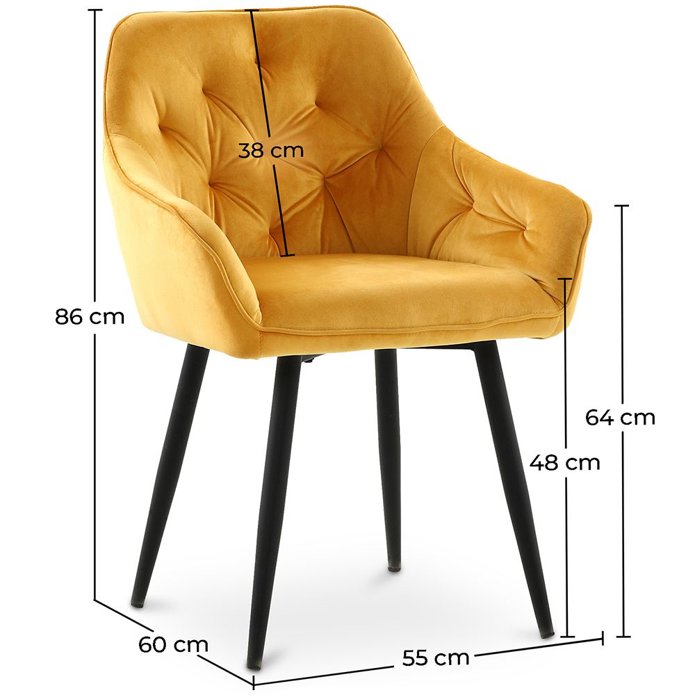 Krzesło do jadalni z podłokietnikami - tapicerowane aksamitem - Carrol Popraw doznania kulinarne w swoim domu, restauracji lub hotelu dzięki temu krzesłu do jadalni w stylu skandynawskim. Już sam jego wygląd świadczy o luksusie, komforcie i klasie. Wykonane jest z aksamitnego tapicerowanego siedziska, oparcia i niskich ramion. Cztery lekko wyciągnięte nogi wykonane są z metalowych rurek i pokryte czarnym proszkiem. Ten piękny mebel do jadalni może być również używany do salonu w kuchni, zwłaszcza jeśli masz niski blat. Można go również wykorzystać do ulepszenia koncepcji wybranej do wystroju wnętrza. Wybierając nowoczesne, współczesne krzesła do jadalni, jest to idealne rozwiązanie dla Twoich potrzeb.