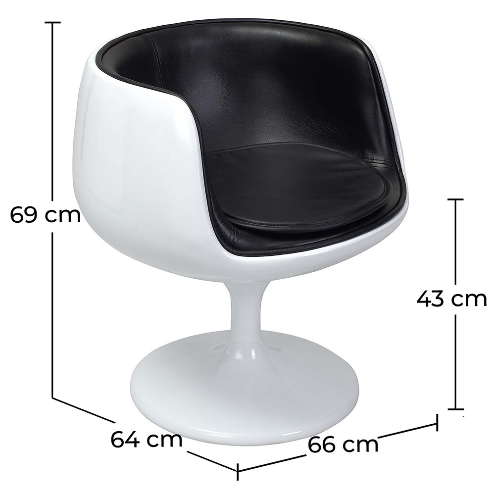 Ten fotel do salonu przekonuje przyjemną linią i wygodą. Obraca się wokół własnej osi i oferuje wyjątkowe miejsce do siedzenia. Krzesło to jest szczególnie odpowiednie do jadalni, salonów, barów lub recepcji. Wśród jego mocnych stron, jego struktura z włókna szklanego, tapicerka i wyściółka sprawiają, że jest to obiekt, który jest jednocześnie solidny i wygodny. Jego pojedyncza noga jest również bardzo charakterystyczna dla skandynawskiego designu tamtych czasów. Dostępny w kilku kolorach: Czarny, Biały, Brązowy, Jasnoszary, Czerwony, Różowy, Fioletowy, Pomarańczowy, Żółty, Turkusowy, Niebieski Darwick, Jasnoniebieski, Czekoladowy, Jasnozielony, Kość Słoniowa, Szary Darwick, Fuksja i Zielony Darwick.