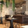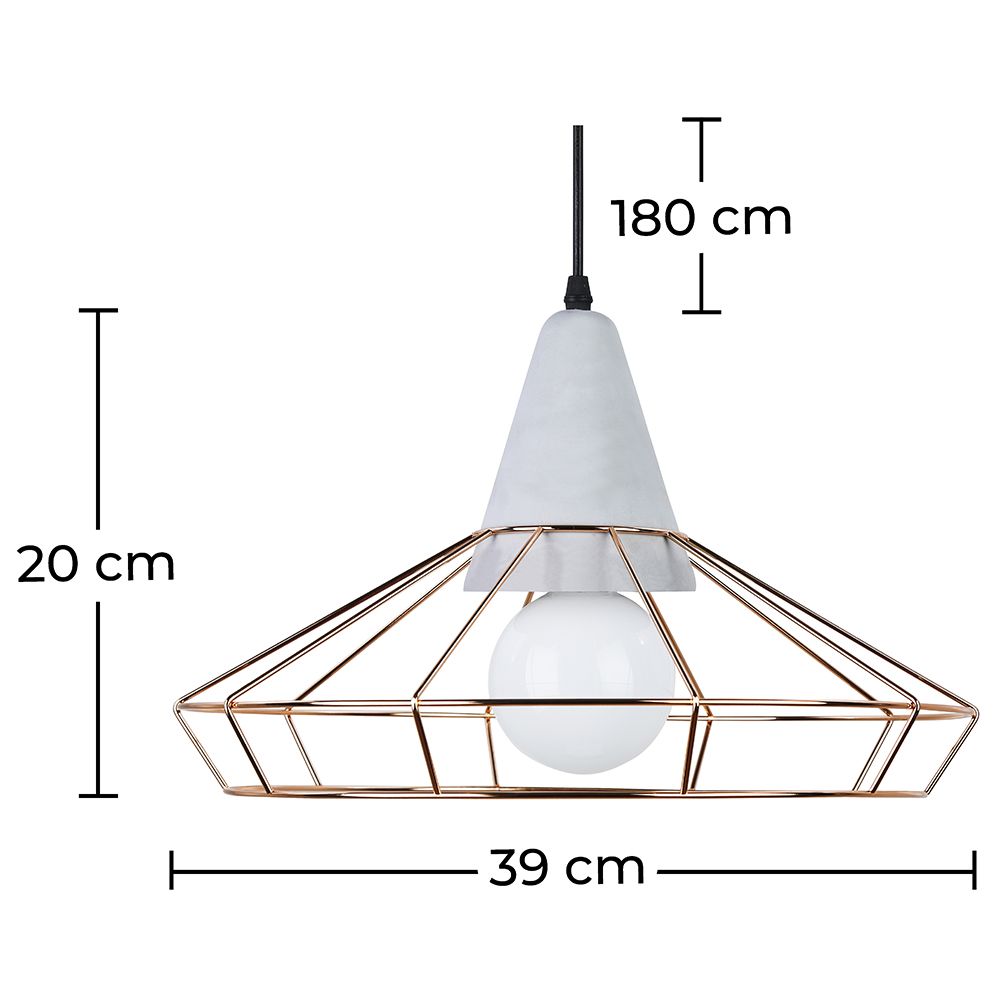 Ta lampa wisząca osiąga wyczyn: ma zarówno rozszerzaną podstawę, jak i widoczną żarówkę. Ten projekt jest możliwy, ponieważ jego podstawa jest rodzajem rzeźby wykonanej z metalowych pasm.