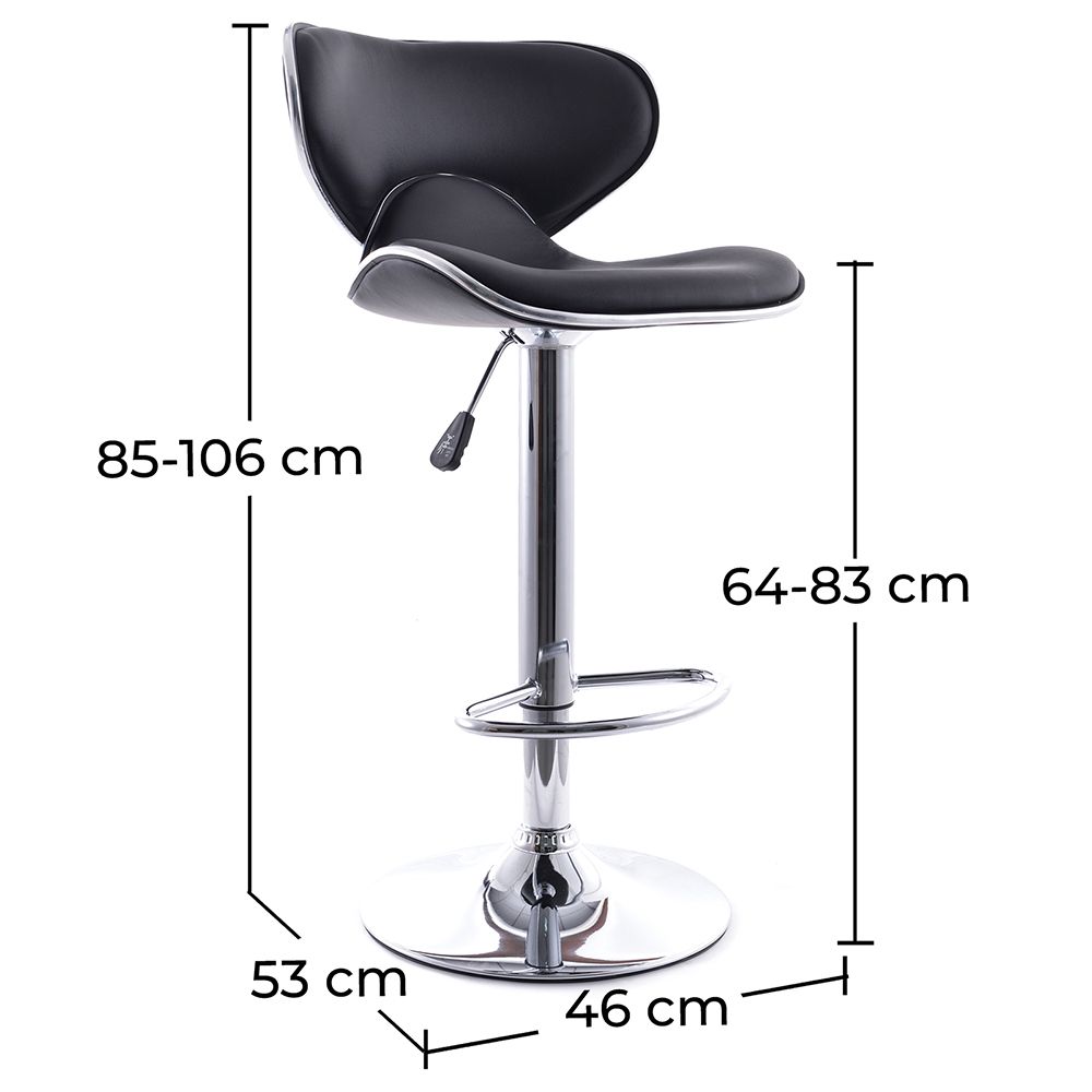 Ten praktyczny stołek barowy z zakrzywionym oparciem i regulowaną wysokością jest wygodny, praktyczny i elegancki. Idealny do kuchni, barów i lad, ma elegancki wygląd i jest bardzo wygodny dzięki oparciu, które znajduje się w idealnej części pleców, aby móc się zrelaksować w wyprostowanej pozycji. Oprócz klasycznego designu, ten stołek barowy z zakrzywionym oparciem jest bardzo praktyczny, ponieważ nie tylko posiada wewnętrzny mechanizm gazowy, który pozwala regulować jego wysokość od osiemdziesięciu centymetrów do stu centymetrów, ale także jego siedzisko wykonane z poliuretanu jest obrotowe, bardzo trwałe i łatwe do czyszczenia i konserwacji.