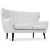 Ta trzyosobowa sofa w stylu skandynawskim jest tapicerowana miękkim lnem, jej skośne nogi są z ciemnego litego drewna. Jest to sofa z wysokim oparciem i pikowaniem. Poduszki siedzenia są wypełnione pianką i są puszyste i bardzo wygodne.