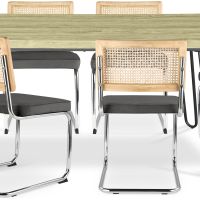 DOM / Krzesła jadalniane / Pack Hairpin Dining Table 150x90 & 6 Black Mesh Rattan and Velvet Chairs - Wanda